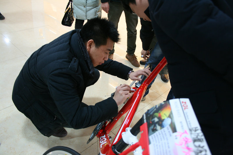 奥运冠军杜伟为ZGL国旗标公路车签名