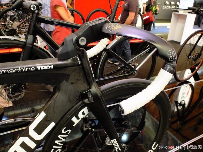 BMC发布了两款新的场地自行车,这在公司还是首次,Track TR01具有激进的碳纤车架,非常坚固而且具有空气动力性能,它提供两个可选的把立以适应追逐赛和冲击赛。这辆自行车展示了完全可调的冲击把立,效果非常显著,整车的价格是5999欧元,而车架的价格是2999欧元。