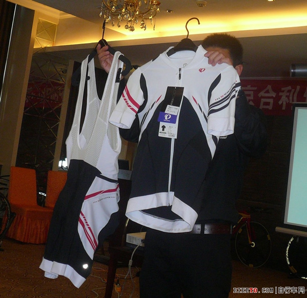 这次主要介绍的都是冬季产品,最后介绍了PERALIZUMI顶级的夏季骑行服,裤子使用3D剪裁,因此骑行时舒适,你站起来反而会觉得紧绷。连体骑行裤的上衣部分使用最透气的网格材料。上衣使用的面料可以利用虹吸作用,将身体表面的汗水吸到服装表面,加快排汗,保持身体干燥。由于衣服后兜要装东西,会向下拉扯面料,因此在背面到后兜的面料上加上几条带状抗拉扯面料。