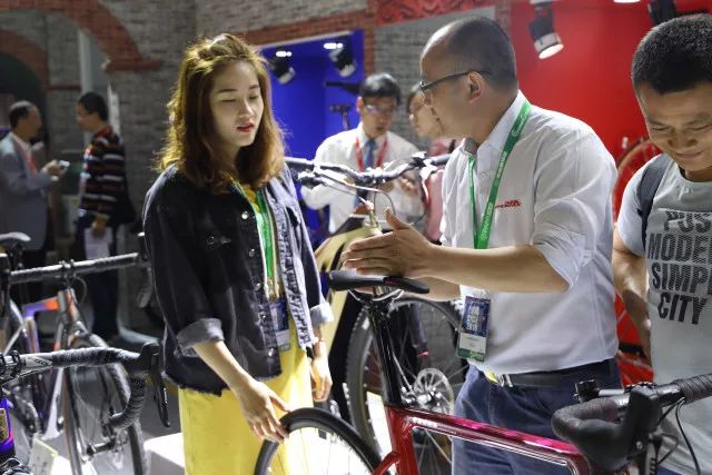 ▲全运赛场全能王黄丽现身第28届国际自行车展,担任凤凰自行车品牌大使。