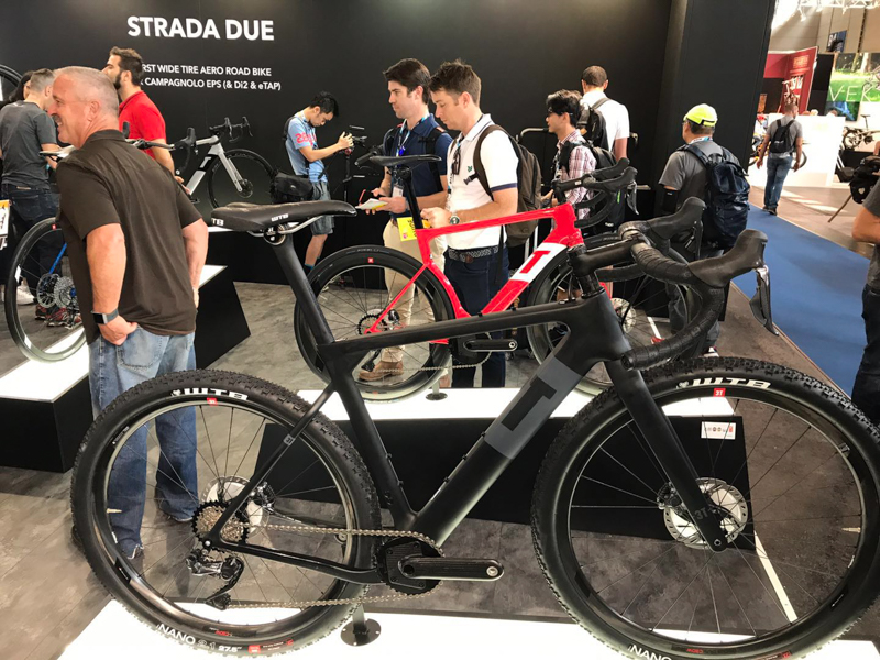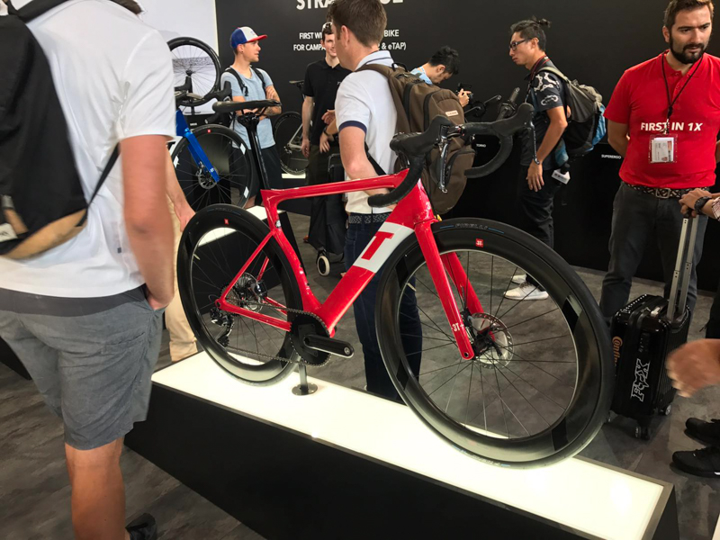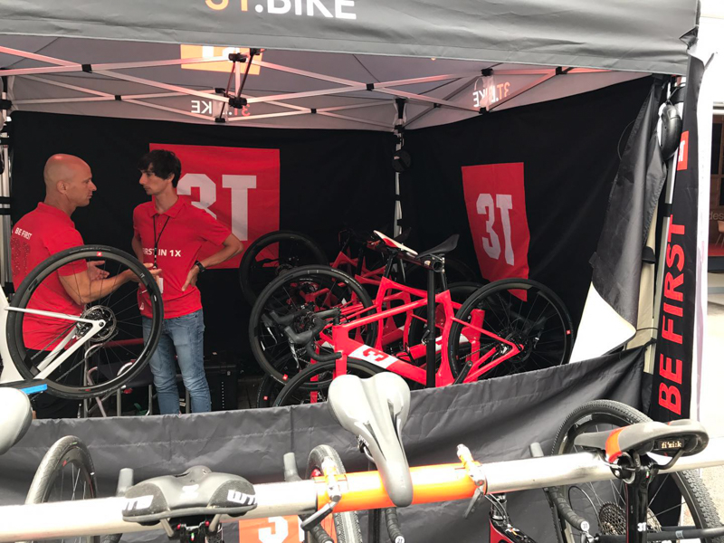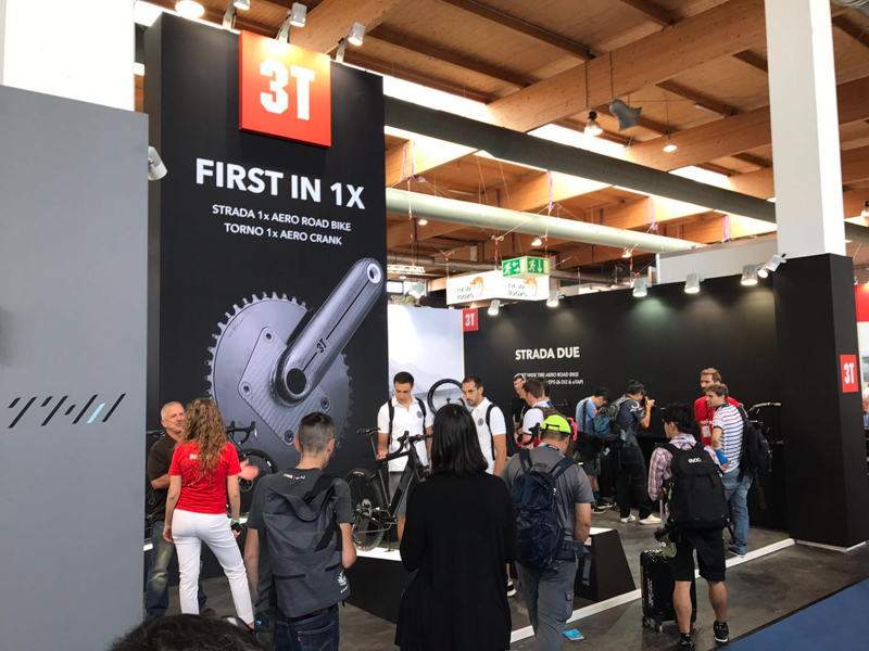 3T,此次展出了为Strada所定制的封闭式牙盘。因为单盘设计,Strada车型被推上风口浪尖。因水蓝车队比赛中的一次机械事故,让大家对Strada造成了很多误解,BIKEWORK亲自向3T证实了此次机械事故的原因,其根本原因为变速器调试失误造成。此次Eurobike上,3T还推出了带有前拨的3T车架,以满足车友们各种需求。场外还提供车辆作为试骑使用。