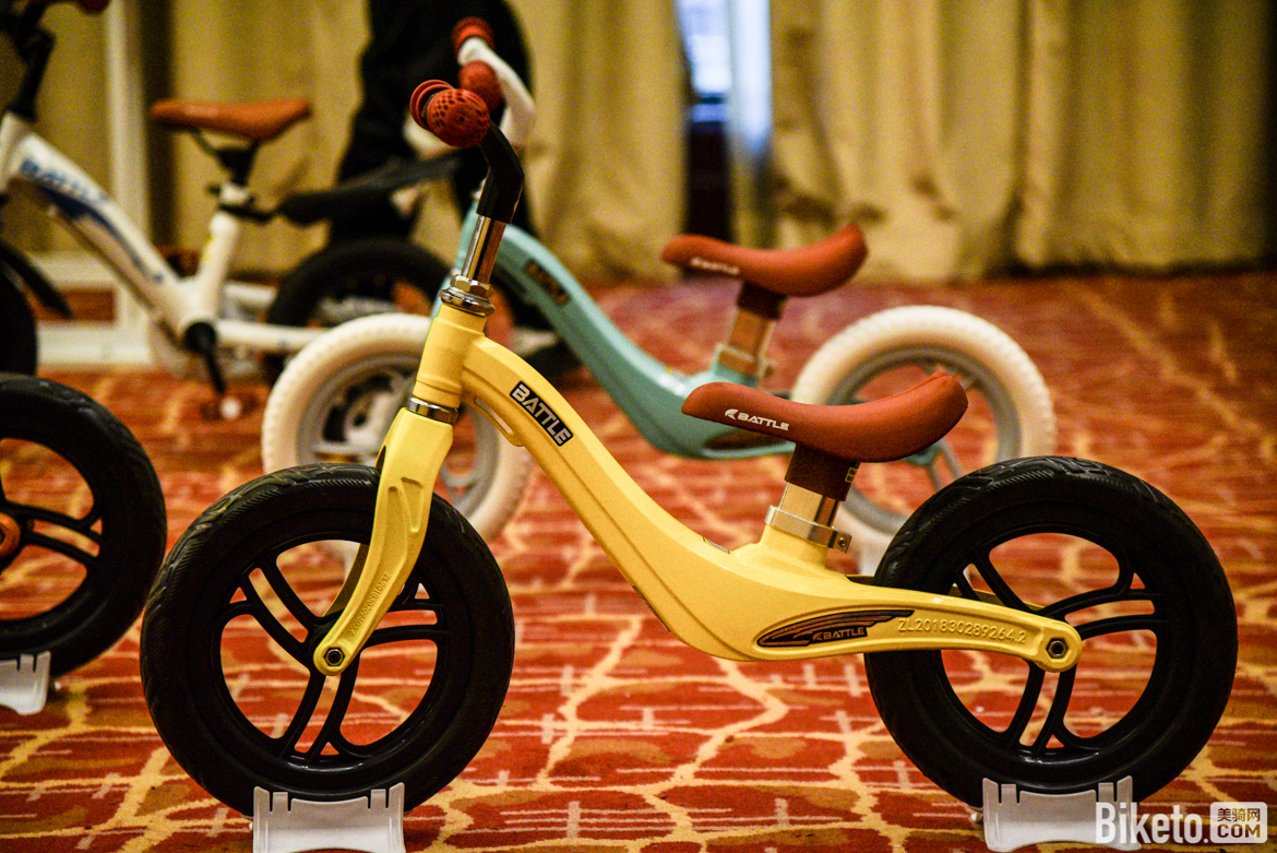 最新推出的12寸炫风平衡车,适用于37个月及以上的儿童使用,车架、前叉、把横、轮组均采用镁合金材质制成,毛重仅为3.2KG。