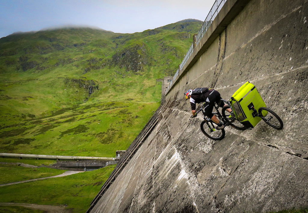 令人难以置信,我的山地车和这个小拖车居然在整个激烈的骑行中“存活”下来,尤其是做翻滚动作的时候。在翻滚时,座管被拖车拉到扭曲,拖车的连接杆也弯曲了,这两个部件的确在这个动作过程中承受了不小的压力,它们原本的使用用途就不该是这样的。