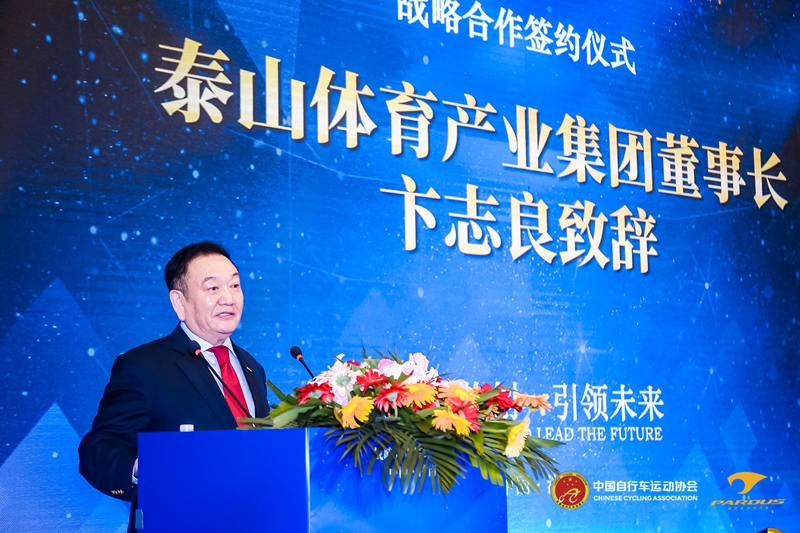 泰山体育产业集团董事长卞志良在致辞中表示,泰山体育40多年只做一件事,为世界各大赛事提供过完善的器材供应和赛事保障。泰山瑞豹拥有完备的高端复合材料研发、制造、检测体系,拥有多年开发、制造经验的技术骨干队伍,现已建成全国最大的高端碳纤维自行车研发生产基地。中国自行车运动协会与泰山瑞豹的合作意义重大,将为双方提供更广阔的发展空间。