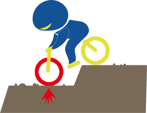 下一阶阶梯或是越过任何种类的障碍都需要暂时放开刹车一下-足以越过障碍的那一下子就够了。障碍带来的冲击再加上刹车带来的冲击铁定让你吃不消。所以当你车子下倾过阶梯时,一定要释放刹车以免你的重心过度向前抛移。