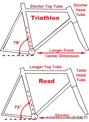 三铁车就是针对解决以上问题而设计的。三铁车的座管角度为76-78度,而一般公路车的座管角度为73-74度。较大的座管角度让选手在上半身与大腿间有较大距离,也使大腿肌群及下背部较不紧绷,并让呼吸更为顺畅。