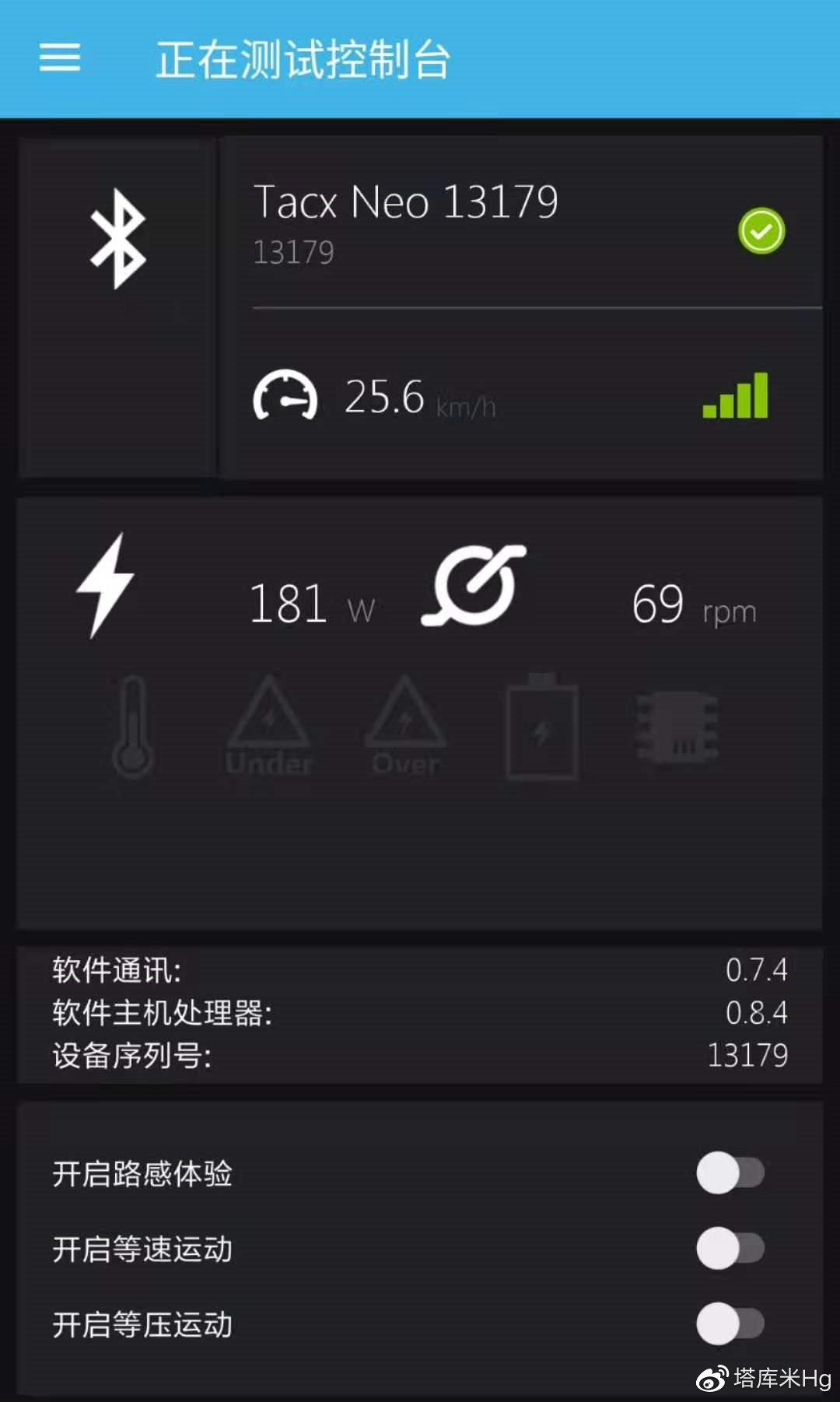 22Tacx的固件升级需要番樯(错杀一千不可放过一个,骄傲我的郭)。NEO2升级固件之后踏频感应直接失灵,我曲柄绑了个智骑踏频计解决的。和Tacx技术掰扯了几封电子邮件后的建议就是另外加踏频计,要解决就是返回英国供销商维修(Tacx标都是水货),garmin标的维修能不能天朝解决很怀疑,反正之前和天朝兜售的所知是维修都要由供销商返回Tacx原厂修理。