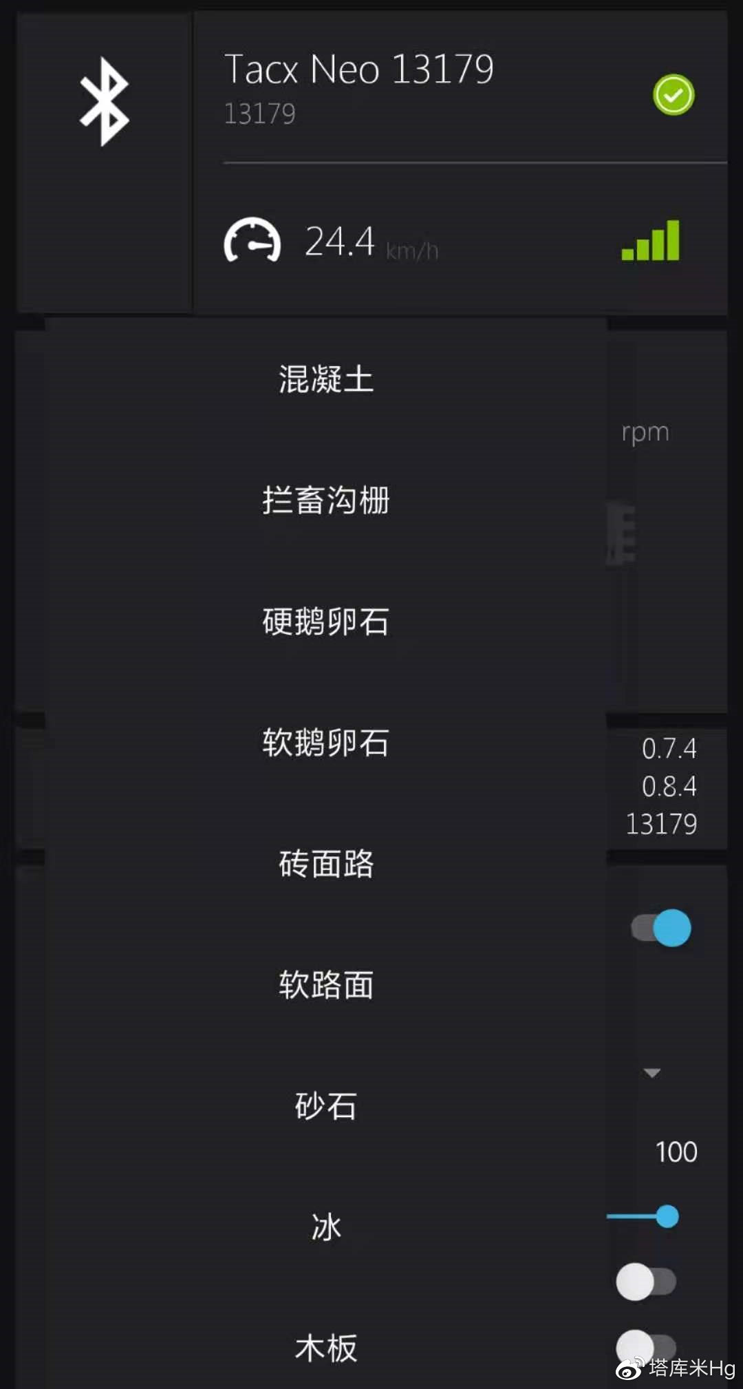 同时你也可以选择不同的路面类型体验不同的乐趣,当然也可以在ZWIFT中开启相关路感体验开关进行骑行。首次使用时选择了石板路的100%反馈,踩踏开始后能明显感觉到“后轮”路过石板接缝时“咯噔咯噔”的感觉,而且踩踏越快,振动的频率也越快,十分逼真。在选择冰面路面时,又能体会到那种后轮在冰面上骑行总是打滑的感觉。当然如果你是平常的功率训练我还是建议你不要打开这个功能,老老实实的使用原始功能好了。