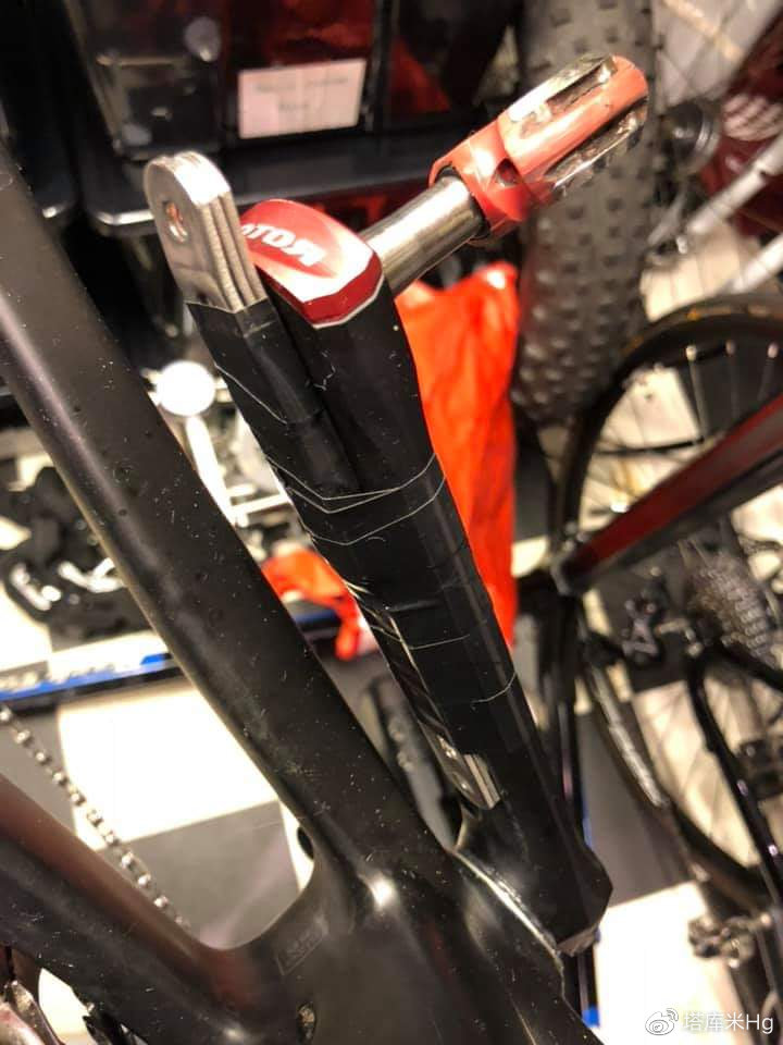 NEO一代采用模拟踏频的方式,NEO2和NEO2T采用踏频器进行踏频测量,听上去好像更加精准,与此同时带来一个问题,在某些特定情况下,特定的曲柄长度(比如155mm)和车架五通位置可能使你的NEO2或者2T感应不到踏频,这时候老外的解决方案是在曲柄上绑一截东西延长曲柄,让感应器感应踏频,如下图所示。