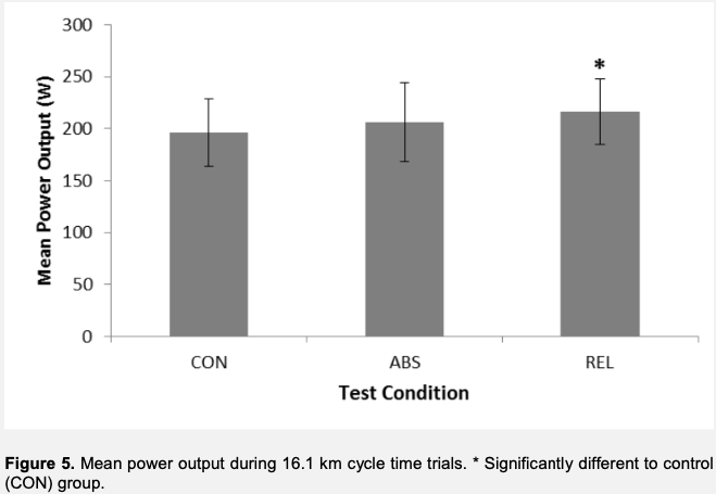 结论表明,ARG没有显著提高TT能力的作用,虽然有缩短完成时间和增加功率的趋势。此外,结果似乎表明如果运动员补充L-精氨酸,相对剂量可能比绝对剂量更有效,需要进一步研究来确定最佳用量。在实际应用层面,在赛前90分钟急性服用6g ARG剂量可以获得小的改善趋势,目前的研究建议6g绝对剂量可能低估了个体对ARG的需求,不过仍被证明有效。
