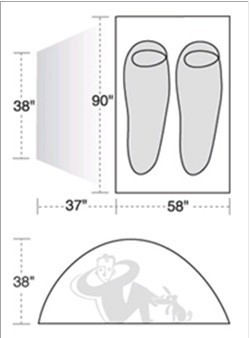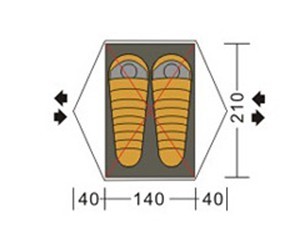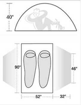 就我自己多年来使用过的数十款帐篷和自己平时观察的情况来看,市面上一般的双人帐篷,内帐宽度一般在120公分到140公分之间(更极端的诸如TerraNova的LaserCompetition2,宽度只有105公分),长度大约在202公分到240公分之间,总占地面积大约在3.5到4.5平米之间。在我看来,如果内帐能有130公分以上宽度,220公分以上长度,总面积能达到4平米以上,就应该算得上是一个具有舒适使用空间的帐篷了。