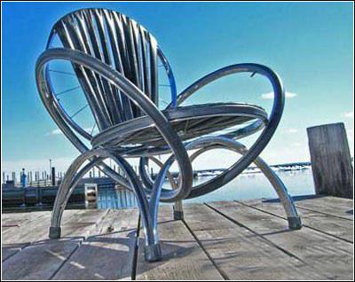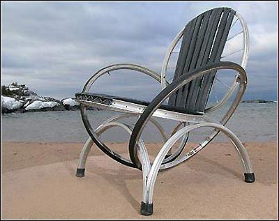 这把由自行车做的椅子快成海边的沙滩椅了