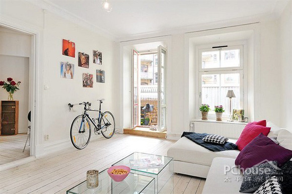 家居环境中的家具现代简约,看似随意停放的公路车,和照片墙完美的结合。谁有能不承认,主人的独具匠心呢。