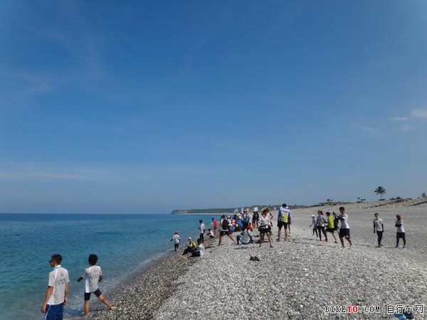 但这里的海岸地形没有沙滩,却是满布的大颗鹅卵石,铁骆驼的伙伴似乎无惧超过35度的高温,在海滩上掷起石头、敲着石头,摆起各种姿态拍着照片,或许是辽阔无际的湛蓝太平洋消弭了疲倦的心情,无隔阂的大海和远方的山牵连起彼此的心。