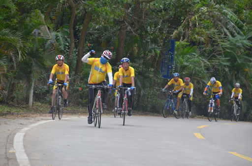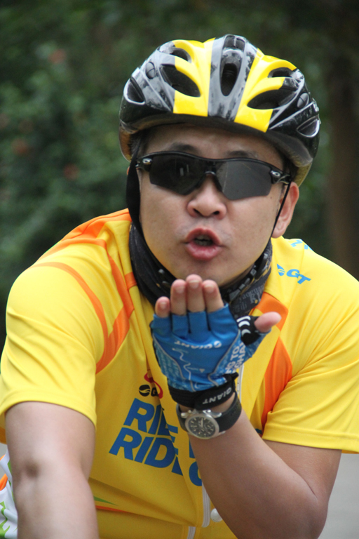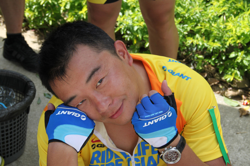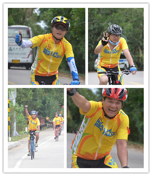 京骑沪动时的最强人林总,是每天骑行结束后不满足骑行里程数自己在晚饭后加骑的强人。海南这种强度的骑行虽然有难度,但是对于林总来说也不算太勉强。不过膝盖不适的他昨天被强制上车,“剥夺”了骑车的权利,使得林总感到非常遗憾。今天林总总算摸到了自己的车子,开心不已,他说,只要上车了,就是胜利了。