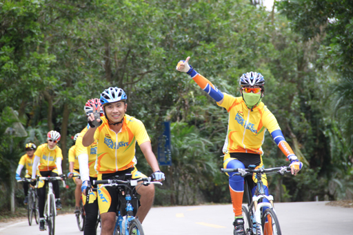 海南骑行虽然难度重重,但是车友们看到镜头还是会露出发自肺腑的笑容