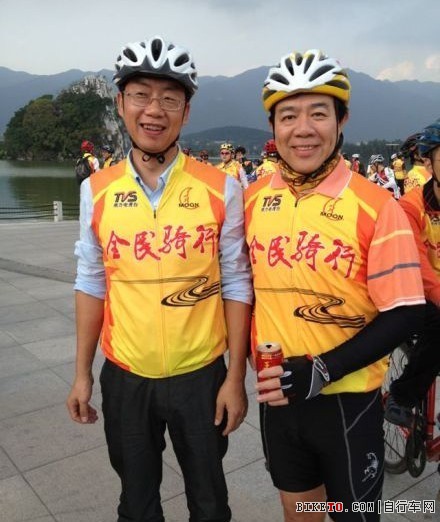 南方经视台汤聪(右)副台长是全民骑行的倡行者