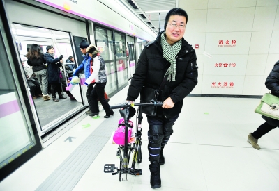带着折叠自行车坐地铁 武汉上班族新玩法