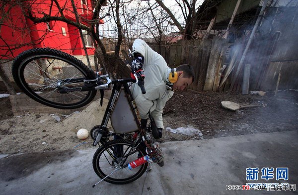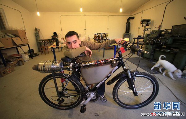 罗马尼亚青年人自制“喷气发动机”自行车(图文)