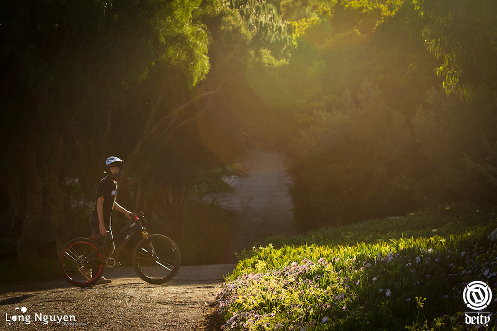 我还很小的时候,大概12岁,那时我经常骑摩托车。我的朋友Andrew是个山地车控,于是我开始跟着他出去。不久之后我开始发现这项运动(山地车)更好玩。在百转千回地转弯之后到达目的地很有趣。碰巧的是,我的邻居也是一个狂热的山地车迷,他对我影响很大,而且给我很大的指导。