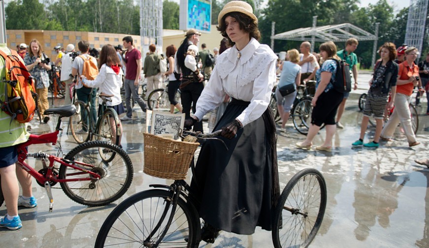 据俄罗斯RIDUS新闻网6月9日消息,俄罗斯首届“复古自行车赛”9日在莫斯科“索科尔尼基”公园举行。与其它自行车比赛不同的是,参加此次“赛跑”的自行车全部都是1860年至1980年期间的复古自行车。