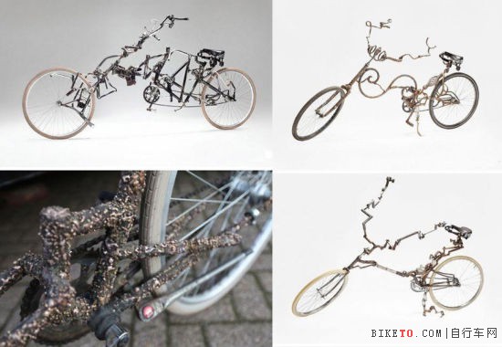 荷兰的艺术家维克多创造出了不寻常的自行车,他从自己的另一个项目“未来怀旧”回收部分原材料,打造废弃的自行车,将其变成骑乘的怀旧艺术。
