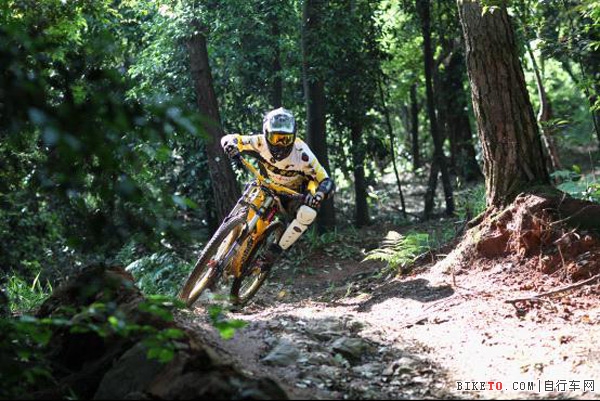 紧接着进入一段不长的乱石区,因为速度很快,路面不平,加上雨天的话还有打滑的情况,因此这一段对路线的选择尤为重要,可以通过左右斜面来控制车辆平衡,保证在车辆进入接下来的板栗槽时方向、速度和节奏都恰到好处。