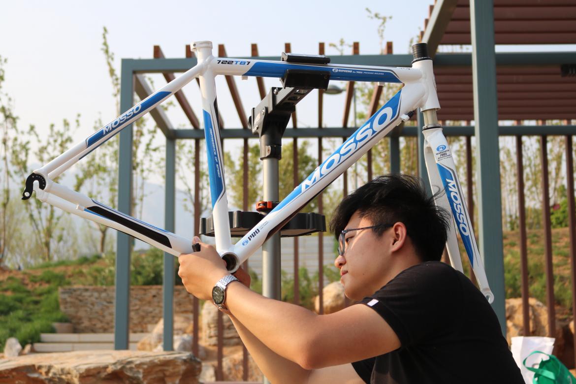女孩子想要挑选一款车架,真的是太难了。我满心考虑的都是尺寸、几何等等影响长久舒适的参数,而她满不在乎,每次看到那些粉嫩欲滴的车架,便以两个字否决:“太丑”。结合外观、尺寸和价格,经过了一个来月的挑选,最终敲定了MOSSO 722TB7这款车架。没什么理由,看对眼了,那就它了吧。