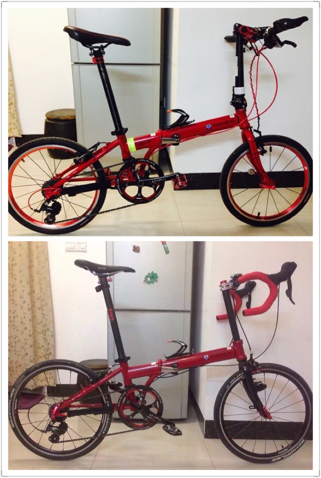【2015年】年头入手的折叠车,这车到后期只剩车架没有改,最后平把也改为弯把了,改后感觉整车重量下降了不少,折叠车头管异响这个通病也根治了,但在此处花的冤枉钱最多;(其实在更早的时间,入手了GAINT ATX777,被盗了,当时也没太多的相片记录)