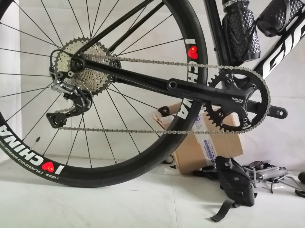 发现没,和颜色一起改变的,还有传动。由于折腾的心在作祟,而且个人很喜欢单盘,所以即使它是一台公路车,我也把它改成单盘了。