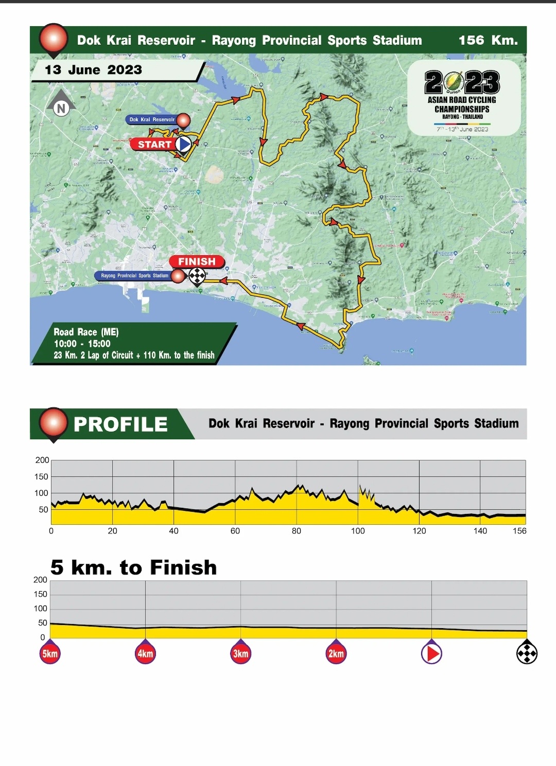 比赛从多莱克水库出发,环绕一圈后南下至沙美群岛公园后,沿着滨海大道向西骑行至罗勇府,相比较女子组路线起伏路段更多,大集团很容易被拉扯成多个小集团,敢于突围选手很有可能甩掉大集团获胜。