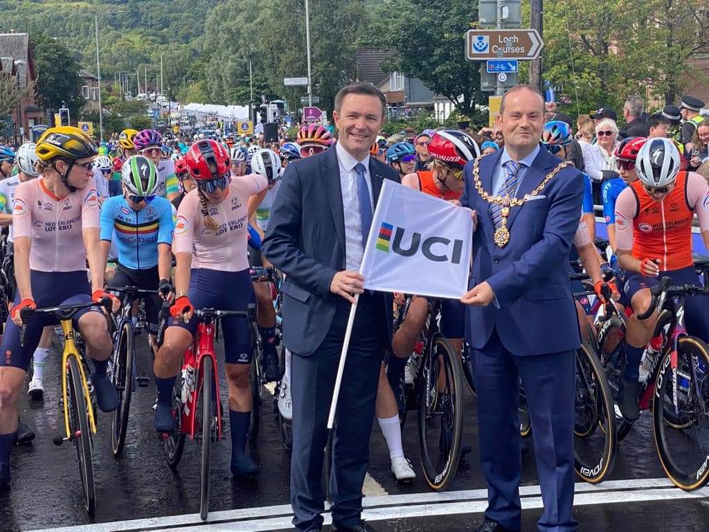 在UCI大卫主席见证下,比赛开始了。选手们出发后不久迎来一场阵雨,待太阳出来后,(捷克)伊丽斯卡尝试单飞打破场上节奏,但很快被大集团追回。不久,法国、比利时、瑞士、英国、南非等国的7名选手开启长途奔袭,身后大集团则维持30秒左右的时差,确保局势可控。