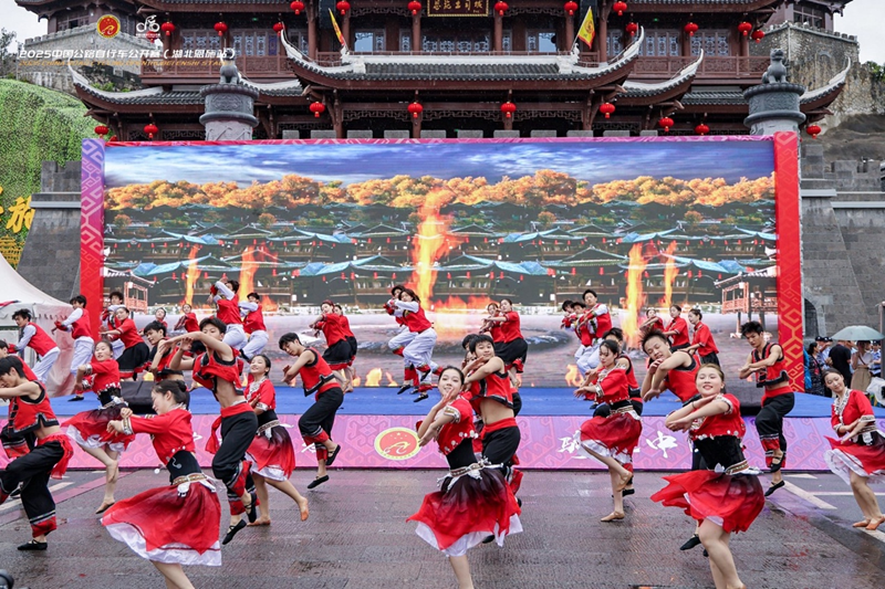 领导嘉宾共同为赛事鸣笛发车,自行车运动员开始驰骋州城。本站赛事共设置两个赛段,第一赛段为城市绕圈赛,以4A级景区恩施土司城为起点,途经恩施州文化中心、恩施土家女儿城等城市核心地带和核心景点,全程26公里;第二赛段为山地挑战赛,全程55.55公里,参赛选手从5A级景区恩施大峡谷出发,一路疾驰于恩施大峡谷—腾龙洞世界地质公园之中,最终冲刺进入亚洲第一大溶洞腾龙洞。