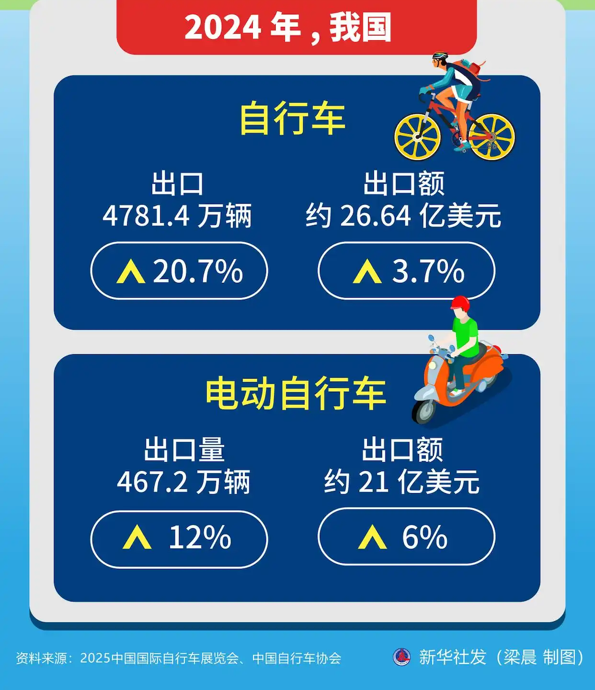 在行业低谷中,电动化转型正成为关键突破口。从产业规模看,我国作为全球自行车生产与消费大国,2024年总产值突破3000亿元,其中运动型自行车和智能助力自行车销售额分别同比增长18%和25%。2025年,全行业规模以上企业超过500家,年产量维持在5000万辆以上,出口额超50亿美元。产品结构虽以中低端为主,但电动自行车等新兴领域快速崛起,成为增长新引擎。数据显示,2024年中国自行车出口量同比增长20.7%,2025年出口量及金额持续增长,凸显国际市场潜力。