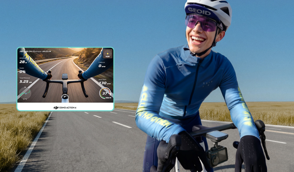 CC700 Pro 可以与大疆 Action 4 及 Action 5 Pro 互联。通过码表屏幕即可控制拍摄开关,让拍摄开始与停止变得触手可及。配合MIMO设置上骑行仪表盘,你的骑行视频将自动嵌入速度、心率、功率——骑行专业感,一键生成。