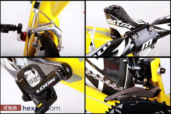 碳纤维——索罗门F7自行车的关键词,是高端自行车所采用的新型材料,自行车档次的高低取决于材料的选择和做工。典型的低、中、高档自行车构架分别由碳钢、铬钼及铝合金和碳纤维制造。碳纤维是一种新型的复合材料,它有重量轻、比强度高、比刚度大的优点,而且具有可设计性和易成型性,从而使设计的结构有更高的结构效率。正是因为如此多的优点,才使得索罗门采用全碳这一高端环保型材料再配合设计大师的品牌诠释打造F7的奢华,让F7在自行车行业大放异彩,这必将成为自行车爱好者与低碳环保时尚一族的饕餮享受。