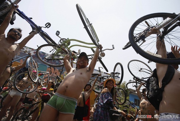 全球开展裸体自行车日 数人因伤风败俗被捕(图)