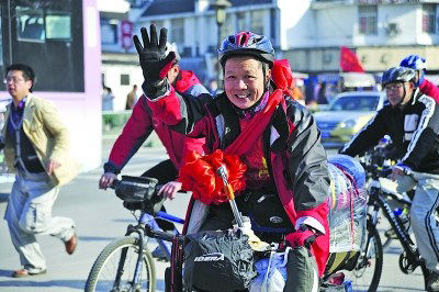一辆自行车,一个大包,一些简单而必要的装备,准备上路的简竞璞感到信心十足。“你看,大家对我都很支持。有的人给我送了应急药,有的人送红景天给我补气。”老简笑着告诉记者,自己准备得还算比较充足。“有骑友告诉我,一路都会有小旅馆,不需要带着帐篷什么,但我还是带了帐篷、睡袋和一些应急用品,这样以防万一。不过我衣服带得不多,因为我想我主要是运动状态,应该不会冷。”