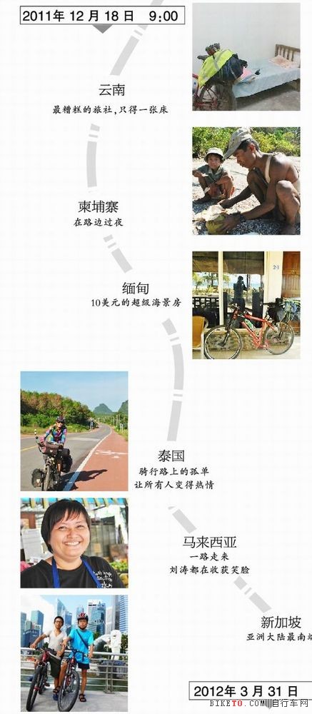 刘涛的自行车留在了新加坡校友那里,虽然自行车是他这一路最亲密的伙伴,但他不想把太多的感情投入到物质上。如果有人愿意购买,刘涛会出售;如果有人想骑着它来中国成都,刘涛愿意奉上。当然,如果没有人理会它,刘涛或许会在几年后骑上它开始另一段旅程。