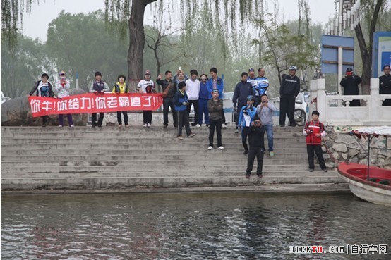 到达雄县岸边,雄县车友迎接条幅老给力了!