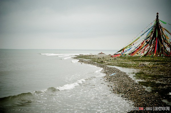 相比较昨天阳光灿烂的青海湖风光而言,今天的青海湖是另一种美。寒风中车友们骑行在沿青海湖公路上,不远处的青海湖浪花一个接一个的拍打着岸边,湖边朝圣的藏民们搭建的一个个金帆在寒风中飘荡,海鸟与雄鹰在天空中翱翔。