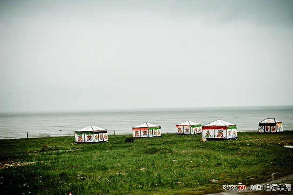 今天的青海湖天空灰蒙蒙,湖边几个藏族帐篷