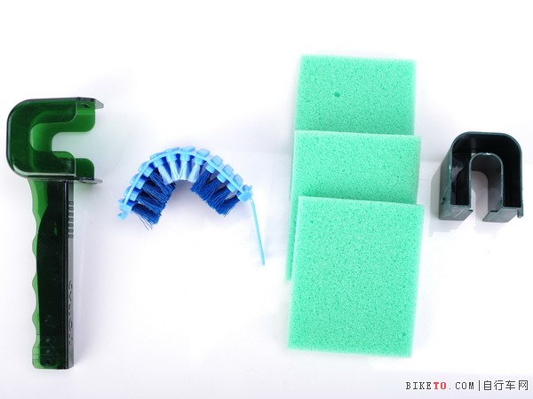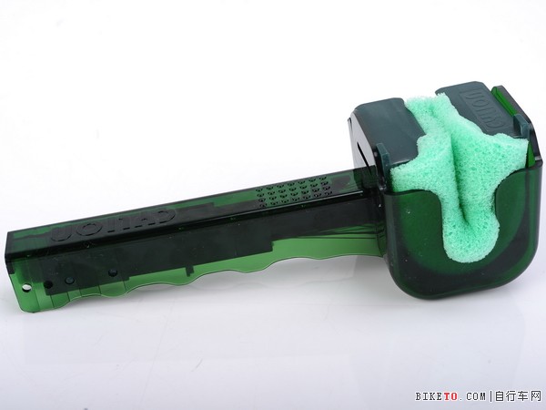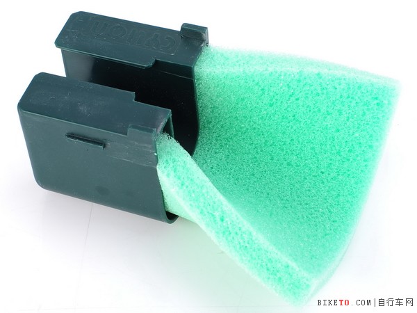 在洗干净链条后,可以用海绵来快速擦干链条,避免生锈。使用海绵的方法,是把海绵塞入模具,然后向U形凹槽内弯