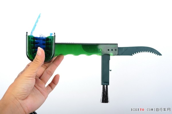北斗多功能洗链器手柄位置内含一个飞轮清洁勾镰和一个清洁刷