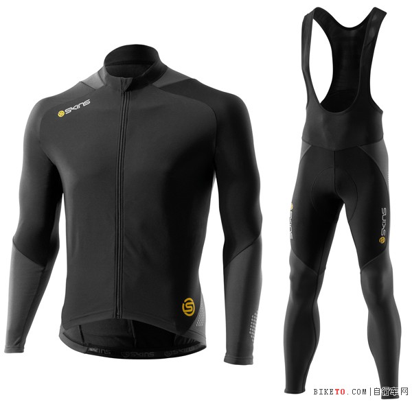 图中为SKINS C400系列男子非压缩保暖长袖外套及男子梯度压缩保暖背带长裤