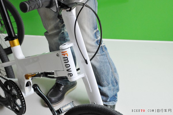 据悉,即将到货的IFmove将会把座管下部设计成停车座(选配),折叠后将座管压下便可将车子放稳。不过现在的样车上面还没有应用这个设计