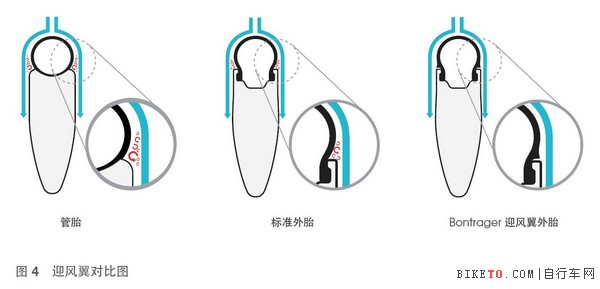 迎风翼设计在Bontrager R系列外胎上的流行应用和优势已经无需再说,现在我们将优势复制到AW产品线上。全新的颠覆性设计最大程度的在胎缘减少空气阻力,提高空气动力性。管胎在轮缘留下小的压痕边缘以满足管胎粘黏特性;普通外胎在轮缘留下了细小的缝隙,这部分凹陷边缘造成空气扰流,增大空气阻力;Bontrager 迎风翼设计与以上两种相比极大改善空气流动,降低阻力。