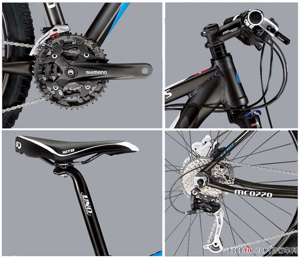 TTGO 推出的MC0770 定位时尚高端,这辆竞技车车架使用强度高的6061铝合金材质,新型的锥形头管设计加强了车架的整体强度,色彩亮泽,油漆饱满,均匀细腻的涂装估计会让你爱不释手,SUNTOUR SF14-XCM 锥形油压锁死前叉SHIMANO 27速高级定位变速系统,强劲的油压碟刹,高强度性能表现的双层铝制轮圈,带来畅快的骑行感,是穿越颠簸狭窄山间小路的最好选择。