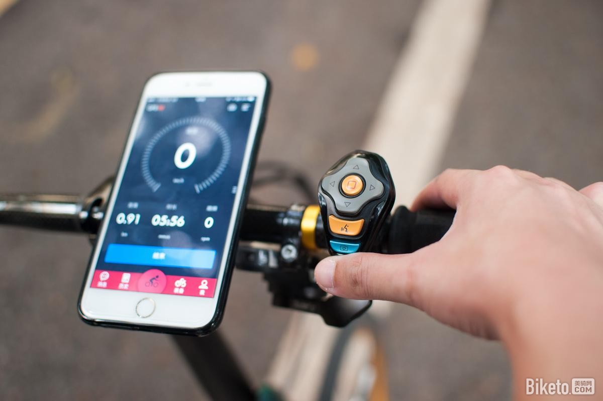 BH-60闪盔相比其他智能人身装备的优势在于它的控制性,不仅有LIVALL自己开发的一套APP,还有一个闪控来辅助整套智能骑行系统。闪控安装上自行车车把上,调整好位置后,拇指刚好能接触各个按键,符合人体工学。上下按键是音乐歌曲切换,左右按键是操控闪盔的转向灯,中间的按键是歌曲的暂停和播放,下方对讲键可以激活APP内的语音对讲功能,拍照按键直接激活手机中的相机功能。之后LIVALL还会推出可调角度的手机支架,配合即可在骑行过程中拍摄车把视角的照片。
