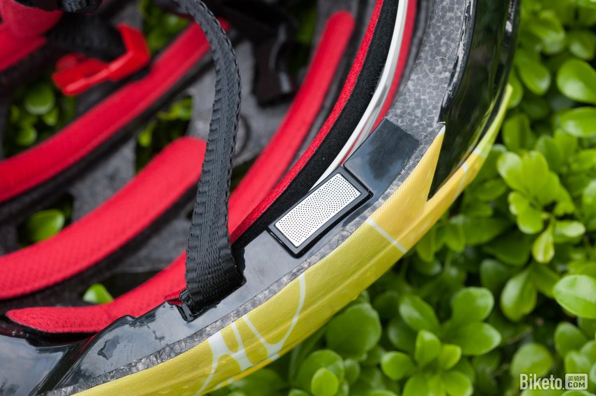 闪盔内所有智能传感器都隐藏的很完美,做工精致